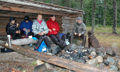 ligger Per-Anders udde med vindskydd och grillplats. En gulmarkerad stig