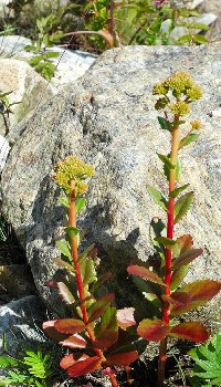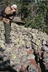 Sven Norman fotograferar långröset och blommande kärleksört