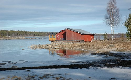 Gammal sjöbod med modernare lusthus ...