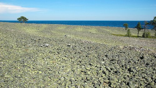 delvis bevuxna med renlav. Närmast havet dominerar gulgrön kartlav. Här