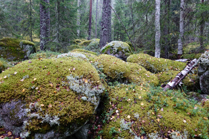 mark. Längre ned på sluttningarna ökar inblandningen av gran.