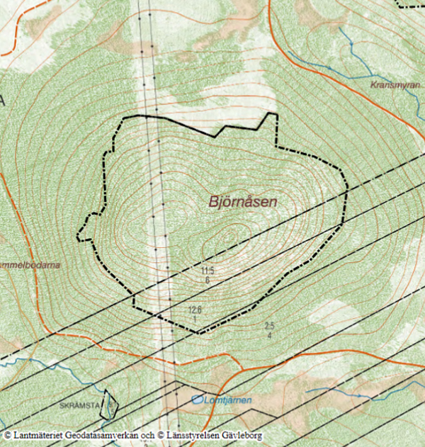 Naturreservatet består av berget Björnåsen och skogen norr om