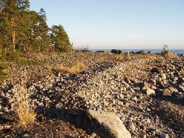 norra del finns stora klapperstensfält, där man kan se tydliga strandvallar