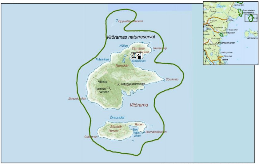 omkringliggande stugbebyggelse. Naturreservatet nås endast med båt.