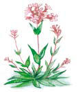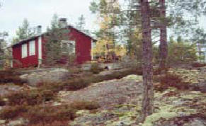 I juni blommar fjällnejlikor runt stugan.