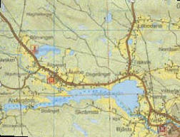vägskälet till Knoppe. Kör åt nordväst ca 4 km. Sväng sedan vänster och kör en knapp