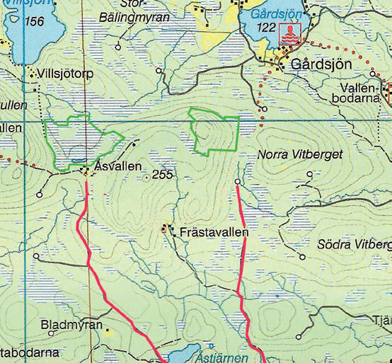 brant backe och fortsätt ungefär 7 km till Åsvallens fäbod.