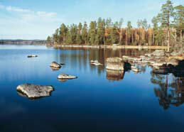 östra strand. Härifrån har man vid utsikt över sjön. Det finns en naturstig österut