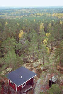 Berg med utsiktstorn och raststuga. Milsvid utsikt åt alla