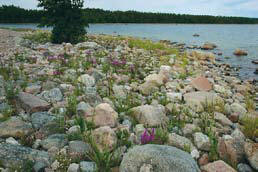 fin stig åt nordväst. Stigen följer stranden med utsikt över Bottenhavet mot