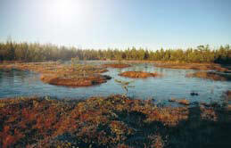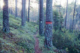 Stigens västligaste del passerar en liten tjärn med bl.a. smålom och trana.